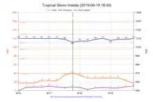 Tormenta tropical Imelda fue un ciclón tropical débil pero catastrófico cuyos restos están causando inundaciones repentinas récord en el área sureste Texas. El undécimo ciclón tropical y el noveno tormenta con nombre de la temporada de huracanes del Atlántico 2019, Imelda se formó a partir de una baja de nivel superior que se desarrolló en el Golfo de México y se movió hacia el oeste . Poco desarrollo ocurrió hasta que el sistema estuvo cerca de la costa de Texas, donde rápidamente se convirtió en una tormenta tropical antes de trasladarse a tierra poco después.