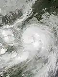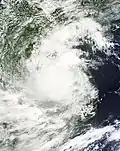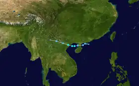 El sistema trajo aguaceros y fuertes lluvias al delta del río Perla, incluidas partes de Hong Kong, Macao y la provincia de Guangdong, donde las inundaciones destruyeron un puente y dos personas resultaron heridas.[23] En la terminal de ferry de Macao, dos pasajeros resultaron heridos cuando un barco chocó con la terminal, mientras que no se informaron daños significativos dentro de Hong Kong.[23] Los daños en China fueron de CN¥60 millones (US $9,14 millones).[21]