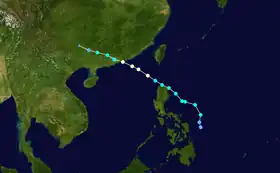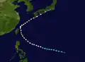 El 2 de julio de 2016, se formó una depresión tropical a 780 km (485 millas) al sureste del estado de Yap.[32][33] Al día siguiente, la depresión se convirtió en tormenta tropical, recibiendo el nombre de Nepartak.[32] Para el 4 de julio, la organización aumentó y Nepartak se intensificó hasta convertirse en una tormenta tropical severa.[32] En ese momento, PAGASA asignó el nombre local de Butchoy al ingresar a su área de responsabilidad.[34] Temprano el 5 de julio, Nepartak comenzó a experimentar una rápida intensificación, alcanzando la fuerza de un tifón.[32] Nepartak pronto alcanzó la intensidad de un súper tifón de categoría 5.[35] Durante el transcurso del 6 de julio, Nepartak alcanzó su máxima intensidad con vientos sostenidos de 205 km/h (125 mph) durante 10 minutos y una presión barométrica mínima de 900 mbar.[32][36] Nepartak comenzó a debilitarse durante el día siguiente, antes de tocar tierra en la ciudad de Taitung el 8 de julio. Nepartak se debilitó a tormenta tropical[32][37] cuando tocó tierra por segunda vez en Shishi en Fujian.[38] Nepartak se deterioró rápidamente sobre la tierra y se disipó por completo el 10 de julio.[32][39]