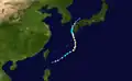 Durante el 21 de julio de 2016, se desarrolló una perturbación subtropical al final de una vaguada de baja presión en latitudes medias, a unos 775 km (480 millas) al este de Iwo-To.[54] Durante el día siguiente, se desarrolló una convección atmosférica profunda sobre el centro de circulación alargado de bajo nivel del sistema, antes de que la Agencia Meteorológica de Japón (JMA) lo clasificara como depresión tropical el 22 de julio.[54][55] Durante el día siguiente, a medida que la tormenta avanzaba hacia el norte-noreste alrededor de una cordillera subtropical de alta presión, su estructura mejoró a medida que desarrollaba un núcleo cálido y se consolidaba.[56] El sistema híbrido fue posteriormente clasificado como tormenta tropical Cuatro-W por el Centro Conjunto de Advertencia de Tifones (JTWC) durante el 23 de julio, antes de que la Agencia Meteorológica de Japón (JMA) lo nombrara Lupit ese mismo día.[55][56] Durante el día siguiente, Lupit alcanzó su punto máximo con vientos sostenidos de 75 km/h (47 mph), ya que pasó por una transición extratropical y adquirió características frontales.[55][57] Posteriormente, Lupit se convirtió en extratropical durante el 24 de julio, antes de disiparse el 26 de julio, cuando se movió hacia el Mar de Ojotsk[55].