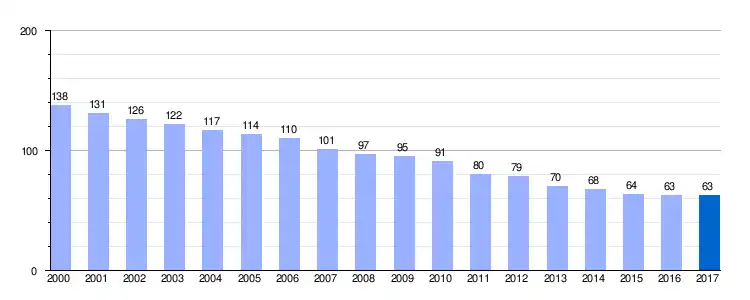 | Gráfica de evolución demográfica de Torneros de Jamuz entre 2000 y 2017 |