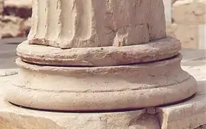 Pedestal con la basa de una columna jónica con un toro, una escocia y nuevamente un toro. Propileos de la Acrópolis de Atenas.