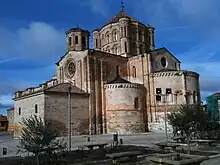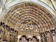 2. Colegiata de Santa María la Mayor, del siglo XII (que a su vez cuenta con el Pórtico de la Majestad), rómanica y gótica. En la sacristía está el famoso cuadro de la Virgen de la mosca (siglo XVI), así como un Calvario de marfil único en España y una custodia de plata que estuvo en Londres hasta hace muy pocos años.[41]