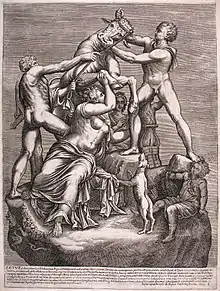 Su tema es el suplicio de Dirce, a la que los hijos de Antíope (Anfión y Zeto), deseando vengar las ofensas a su madre, ataron a un toro salvaje que la arrastró hasta matarla.