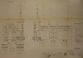 Toda la fachada está cubierta con falsos sillares, el elemento más remarcable de la construcción son los ornamentos florales de todas las aperturas, con elegantes coups de fouet de piedra artificial, que también enmarcan el año de construcción de la casa en la barandilla de la azotea.[1]