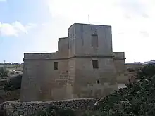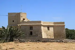La forma de la torre es una Cruz de San Andrés con dieciséis lados. El salón en el centro de la torre es a prueba de bombas, mientras que el piso superior quedó sin terminar. Toda la torre está rodeada por un foso seco de 2 metros de profundidad, y mientras se excavaba se descubrió una tumba fenicia o romana. La torre no tiene aspilleras de mosquetería u otras características defensivas, pero fue lo suficientemente fuerte como para proteger a la familia Mamo y hasta 80 granjeros de los campos circundantes en una incursión breve de los corsarios berberiscos que desembarcaron en St Thomas Bay.[1]