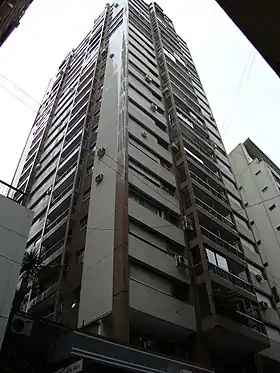 El núcleo ocupado por 3 ascensores fue situado en el centro del edificio, dejando el perímetro reservado para departamentos de 1, 2 y 3 dormitorios con dependencias de servicios. El coronamiento fue destinado a departamentos dúplex con jardín y pileta de natación.