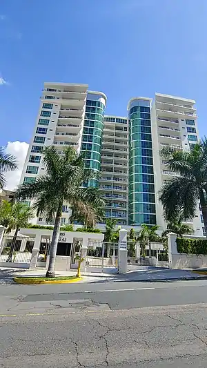 Es un edificio constituido por una torre de 20 niveles, 16 de apartamentos y 4 de estacionamientos la cual alberga 82 apartamentos en total. Cada nivel consta de 6 apartamentos, 3 en cada ala, accesando a través de sus 4 elevadores panorámicos y dos juegos de escaleras para emergencias. Todos los apartamento incluye una bodega y dos parqueos bajo losa.