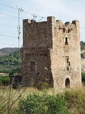 Pese a ello, el hecho de tener la vivienda de dos pisos adosada en su lado sur, junto a otros detalles como la medida de la entrada y el corto número de aspilleras, hacen pensar en su capacidad defensiva limitada, que serviría solo a los habitantes de la alquería, por lo cual se podría relacionar con las alquerías fortificadas de la huerta y formalmente con las masías fortificadas de Gerona, datadas en algunos casos en el siglo XVI.[2]