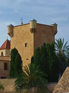 Fue construida para defender el monasterio y el caserío adjunto de los ataques de piratas. Dentro del conjunto de torres y atalayas de la ciudad, es una de las más tardías en ser construidas. Fue una de las obras de ingeniería militar levantadas en la ciudad por italiano Juan Bautista Antonelli (1527-1588), en el año 1575.[2] Es la torre mejor documentada de las que existen en la ciudad, y se encuentra en perfecto estado de conservación.[1]