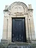 Consta de una planta cuadrada y cuatro alturas. Su puerta barroca se enmarca en molduras de orejas. Sobre el dintel se labra la Cruz de la Victoria. En 1920 se instaló el reloj actual donado por la empresa Unión Gozoniega de La Habana. El edificio se remata con una pequeña torrecilla para las campanas.