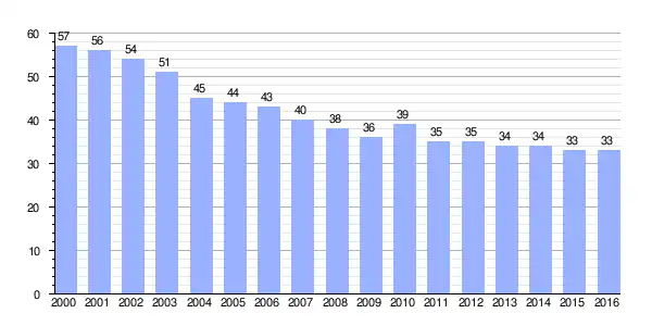 | Gráfica de evolución demográfica de Torreandaluz[5] entre 2000 y 2016 |