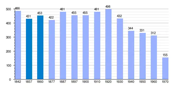 | Gráfica de evolución demográfica de Torrebeleña[4] entre 1842 y 1970 |