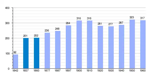 | Años | 1842 | 1857 | 1860 | 1877 | 1887 | 1897 | 1900 | 1910 | 1920 | 1930 | 1940 | 1950 | 1960 | 1970 |