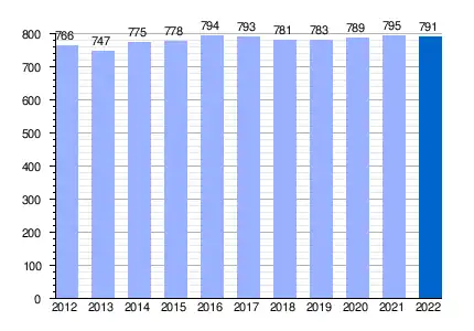 | Gráfica de evolución demográfica de Torrecuevas entre 2012 y 2022 |
