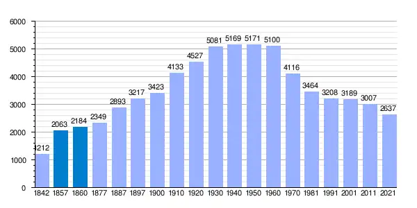 | Gráfica de evolución demográfica de Torrenueva[2] entre 1842 y 2021 |