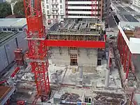 La Tour UAP fue una torre de oficinas de 25 plantas construida en 1972, año en el que se convirtió en uno de los edificios más altos de la ciudad. Vacía desde 1994, el permiso de demolición se concedió el 31 de agosto de 2009.[4] En abril de 2010 se completó la eliminación del amianto de la torre y la deconstrucción del interior.[5] Posteriormente se interrumpió la demolición durante un año y no se retomó hasta agosto de 2011.[6] Durante el tercer trimestre de 2011 se demolieron las plantas exteriores del aparcamiento de la torre y en diciembre del mismo año se instaló una grúa para el desmontaje de la torre planta a planta, a razón de una por semana.[7] Las cinco primeras plantas se demolieron con excavadoras. En mayo de 2012 se completó la demolición de la torre.