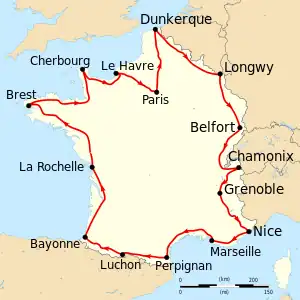 Desde 1906 el Tour de Francia venía atravesando la frontera con Alemania a la Alsacia-Lorena. Después de 1910 las autoridades alemanas no dieron volver a dar permiso, por lo que el Tour se disputó íntegramente en el territorio nacional francés.[6]