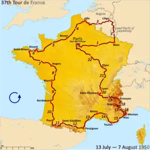 El 37.º Tour de Francia[1] se disputó entre el 13 de julio y el 7 de agosto de 1950 con un recorrido de 4773 km dividido en 22 etapas.