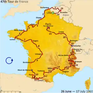 El 47.º Tour de Francia[1] se disputó entre el 26 de junio y el 17 de julio de 1960 con un recorrido de 4173 km dividido en 21 etapas de las que la primera constó de dos sectores.