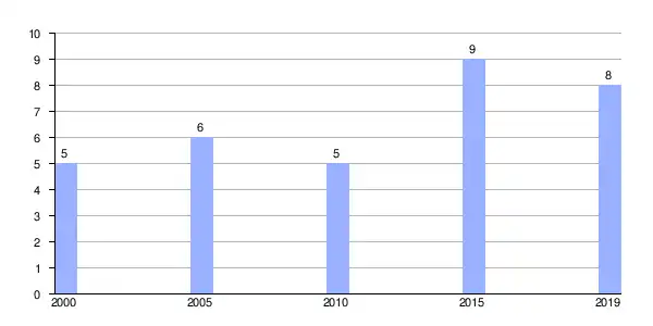 | Gráfica de evolución demográfica de Touriño entre 2000 y 2019 |