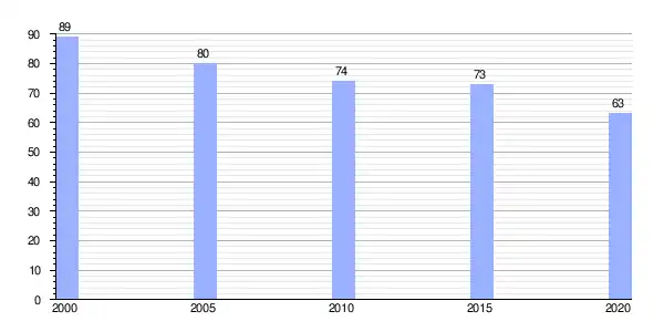 | Gráfica de evolución demográfica de Touville (parroquia) entre 2000 y 2020 |