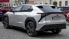 El Toyota bZ4X es un SUV crossover compacto eléctrico fabricado por Toyota . El vehículo debutó en abril de 2021 como el "Concepto bZ4X". Es el primer vehículo basado en la plataforma e-TNGA desarrollada conjuntamente por Toyota y Subaru,[2] y el primer modelo de la marca que forma parte de su serie Toyota bZ ("más allá de cero") de vehículos de cero emisiones .[3][4]
