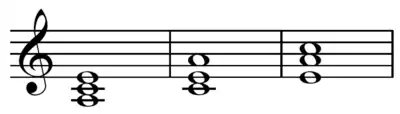 Por ejemplo, el acorde de Do menor consiste en tres notas: C (raíz), Eb (tercera menor) y G (quinta justa):