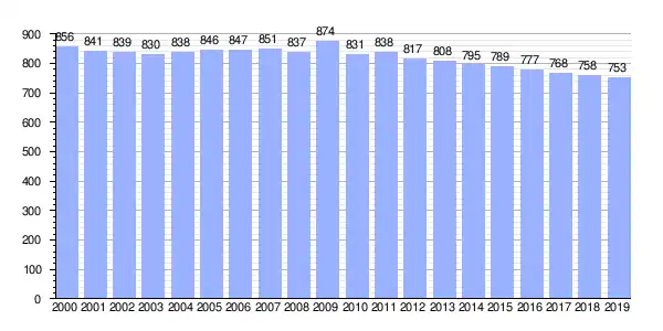 | Gráfica de evolución demográfica de Traba entre 2000 y 2019 |