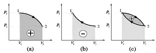 resultando un trabajo positivo () si se trata de una expansión del sistema y negativo en caso contrario, de acuerdo con el convenio de signos aceptado en la termodinámica. En un proceso cuasiestático y sin fricción la presión exterior () será igual en cada instante a la presión () del fluido, de modo que el trabajo intercambiado por el sistema en estos procesos se expresa como
