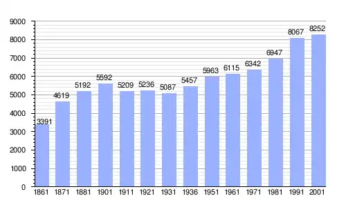 | Gráfica de evolución demográfica de Trabia entre 1861 y 2001 |