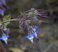 Son plantas herbáceas perennes, pequeñas y cubiertas de pelo abundante. Las flores son acosadas, en cimas sueltas. Son de color azul o blanco azulado. La corola tubular tiene cinco lóbulos lineales cilíndricos. Lleva cinco estambres en la base y cinco glándulas de protección cubiertas de pelo.