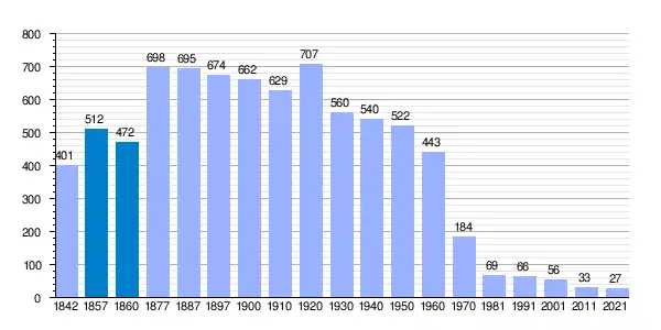 Gráfica de evolución demográfica de Traíd[3] entre 1842 y 2021