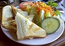 El tramezzino es un sándwich que por el corte realizado se presenta de forma triangular. Consiste en un sándwich elaborado con pan de molde al que se le ha quitado la cáscara tostada. Suele ser relleno de atún, aceitunas (a veces en forma de tapenade) y jamón.