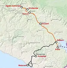 | Paradas principales | Estación Wanchaq, Juliaca, Arequipa, Puno | ||||||||||||||||||||||||||||||||||||||||||||||||||||||||||||||||||||||||||||||||||||||||||||||||||||||||||||||||||||||||||||||||||||||||||||||||||||||||||||||||||||||||||