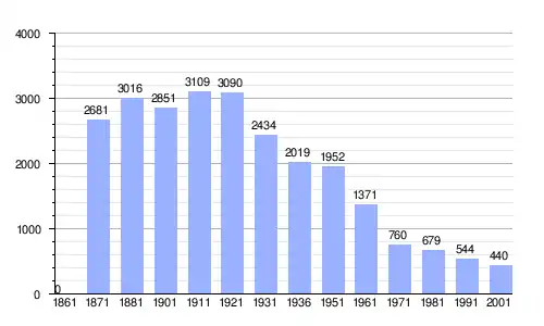 | Gráfica de evolución demográfica de Tramonti di Sotto entre 1861 y 2001 |