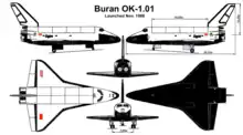 OK-M (0.01) Pruebas estáticas Cosmódromo de Baikonur OK-GLI (0.02) Pruebas aerodinámicas Museo alemán «Technik Museum Speyer» OK-KS (0.03) Pruebas estáticas de integridad y eléctricas Fabrica Energía en Korolev OK-MT (0.04) Maqueta de ingeniería Destruido OK-TVA (0.15) Pruebas estáticas Centro Panruso de Exposiciones, Moscú OK-??? (0.5) Pruebas estáticas Desconocido OK-??? (0.6) Pruebas estáticas Desconocido OK-TVI (0.8) Pruebas estáticas térmicas y de vacío Desconocido Buran (1.01) Operativo Destruido Ptichka (1.02) Construcción interrumpida (97% completado) Cosmódromo de Baikonur Baikal (2.01) Construcción interrumpida (40% completado) Túshino, Moscú Buran (2.02) Construcción interrumpida Parcialmente desmantelado, Tushino, Moscú Buran (2.03) Construcción interrumpida Destruido