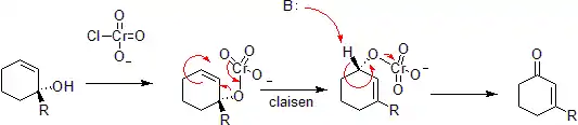 El cromo puede oxidar los alcoholes alílicos a cetonas α, β-insaturadas en el lado opuesto del enlace insaturado del alcohol. Esto es a través de una reacción hetero-Claisen concertada, aunque existen diferencias mecanicistas ya que el átomo de cromo tiene acceso a d-orbitales que permiten la reacción bajo un conjunto de geometrías menos restringidas.[37][38]