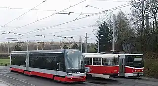 La red de tranvías de Praga es la mayor red de este tipo en la República Checa , que consta de 142,4 km de vía,,[1][2] 931 tranvías,,[1] y 25 rutas diurnas y 9 rutas nocturnas, más una histórica Con una longitud total de las rutas de 518 km.[1] Es operado por Dopravní podnik hlavního města Prahy (Compañía de Transporte Público de Praga), una compañía pública de la ciudad de Praga. El sistema de tranvías de Praga (incluido el funicular de Petřín) sirvió a 324,2 millones de pasajeros en 2012,[3] frente a los 312,9 millones de pasajeros en 2011. La primera línea de tranvía de Praga fue inaugurada en 1875 y el primer tranvía eléctrico funcionó en 1891.[4]