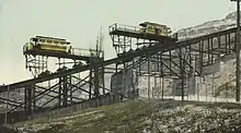 Los tranvías funcionaban en conjunto con cuatro funiculares, el Mount Adams, el Mount Auburn, el Bellevue y el Fairview.[2] A excepción del funicular Fairview, los demás funcionaban para tracción animal, pero después fueron equipados para poder transportar tranvías eléctricos. Los coches entraban en la plataforma, la cual tenía rieles y (en la mayor parte de los casos) cables aéreos. La plataforma, sobre sus propios rieles, llegaba a la cima de la colina tirada por cables, transportando el tranvía. Cuando alcanzaba la cima, el tranvía simplemente era conducido fuera de la plataforma hacia los raíles instalados a lo largo de las calles de la ciudad.[2]