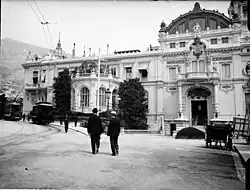 ![]() Dos tranvías, uno de TNL y el otro de TM, afuera del Casino de Montecarlo (abril de 1905). | ||