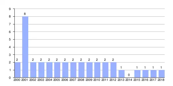| Gráfica de evolución demográfica de Trapa entre 2000 y 2018 |