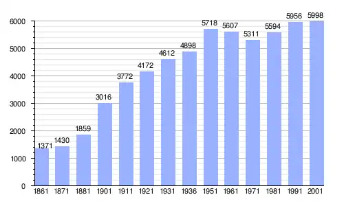 | Gráfica de evolución demográfica de Trasacco entre 1861 y 2001 |
