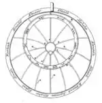 En los círculos más externos, como la figura, está presente la subdivisión de los signos zodiacales y meses del año y en el plato subyacente está presente la división en días, divisiones de 5 en 5:[10] Aries, Tauro, Géminis, Cáncer, Leo, Virgo, Libra, Scorpio, Sagitario, Capricornio, Acuario, Piscis y enero, febrero, marzo, abril, mayo, junio, julio, agosto, septiembre, octubre, noviembre, diciembre.