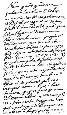 Anotaciones manuscritas de Spinoza en el capítulo 9. Nota 14: "Que algunas personas piensen que Jacob haya viajado 8 o 10 años entre Mesopotamia y Betel, huele a estupidez, Esdras, discúlpame...".[1]