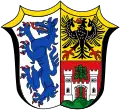 En el escudo de Traunstein hay una pantera azul en un fondo argénteo a la izquierda. Es el blasón de los condes de Spanheim, quienes gobernaban la conmarca ya en el siglo XII. Arriba, en la parte derecha, se ve un águila negra con presas y pico rojas sobre fondo dorado – el blasón del antiguo obispado del lago Chiemsee. Abajo hay un castillo blanco en un fondo rojo y un árbol verde –el blasón del monasterio de Baumburg– que representa la parte septentrional del distrito.