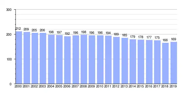 | Gráfica de evolución demográfica de Trazo entre 2000 y 2019 |