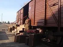 Los trenes consistían en conjuntos de vagones de pasajeros de tercera clase, pero principalmente vagones de mercancías, vagones de ganado o ambos; estos últimos estaban llenos con hasta 150 deportados, aunque 50 fue el número propuesto por las regulaciones de las SS.[22] No se suministró comida ni agua. Los vagones de carga (Güterwagen en alemán) solo tenían una letrina de cubo. Una pequeña ventana con barrotes proporcionaba una ventilación irregular, que a menudo daba lugar a múltiples muertes por sofocación o exposición a los elementos.[23] Algunos vagones de carga tenían una capa de cal viva en el piso.[24]