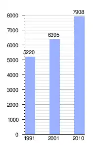 | Gráfica de evolución demográfica de Trevelin entre 1991 y 2010 |