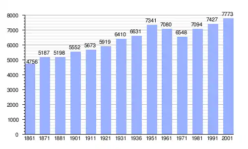 | Gráfica de evolución demográfica de Trevi entre 1861 y 2001 |